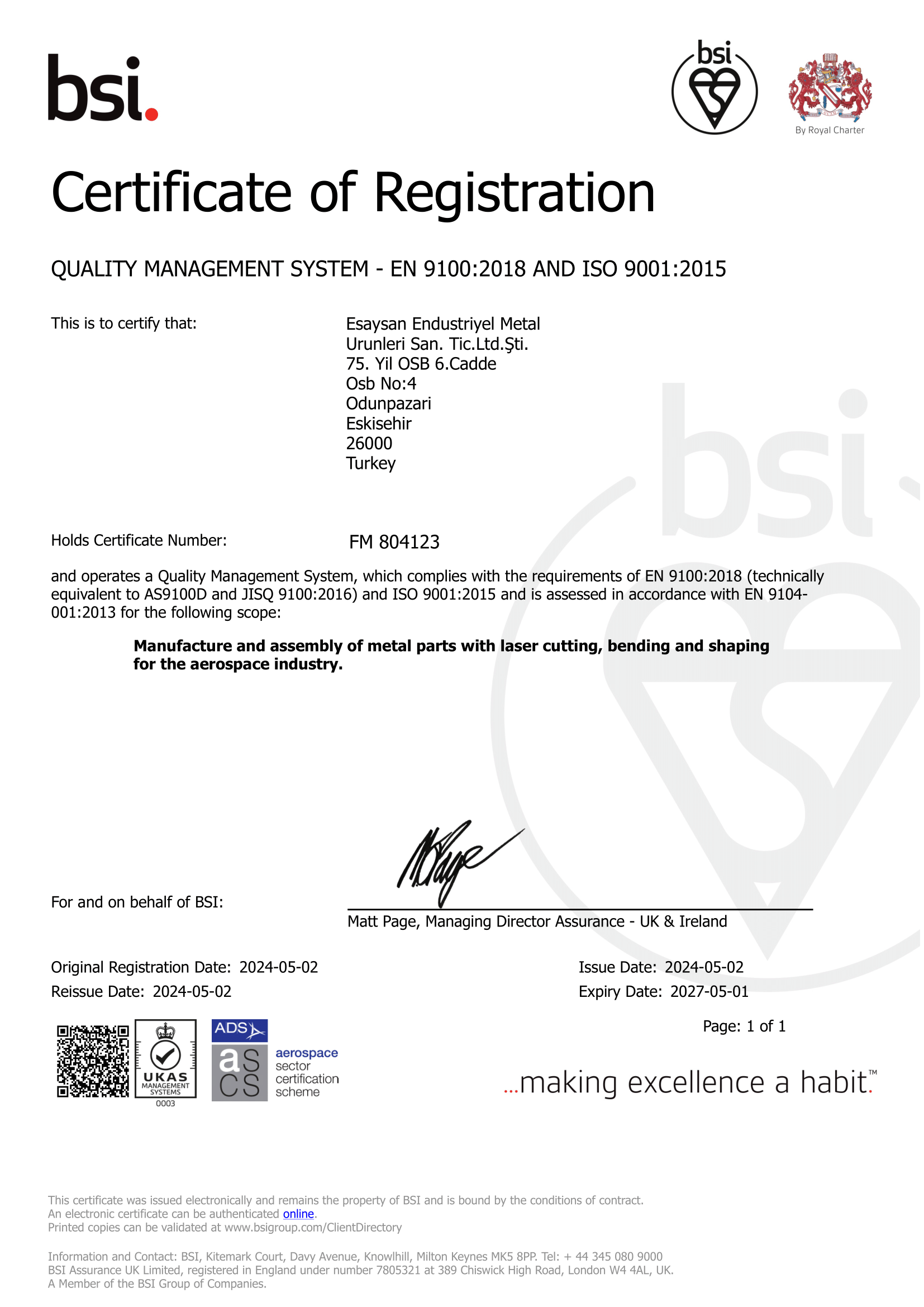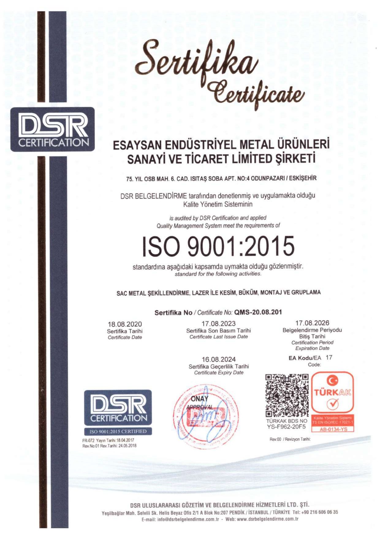 Sertifikalarımız - Esaysan İçeriğe atla